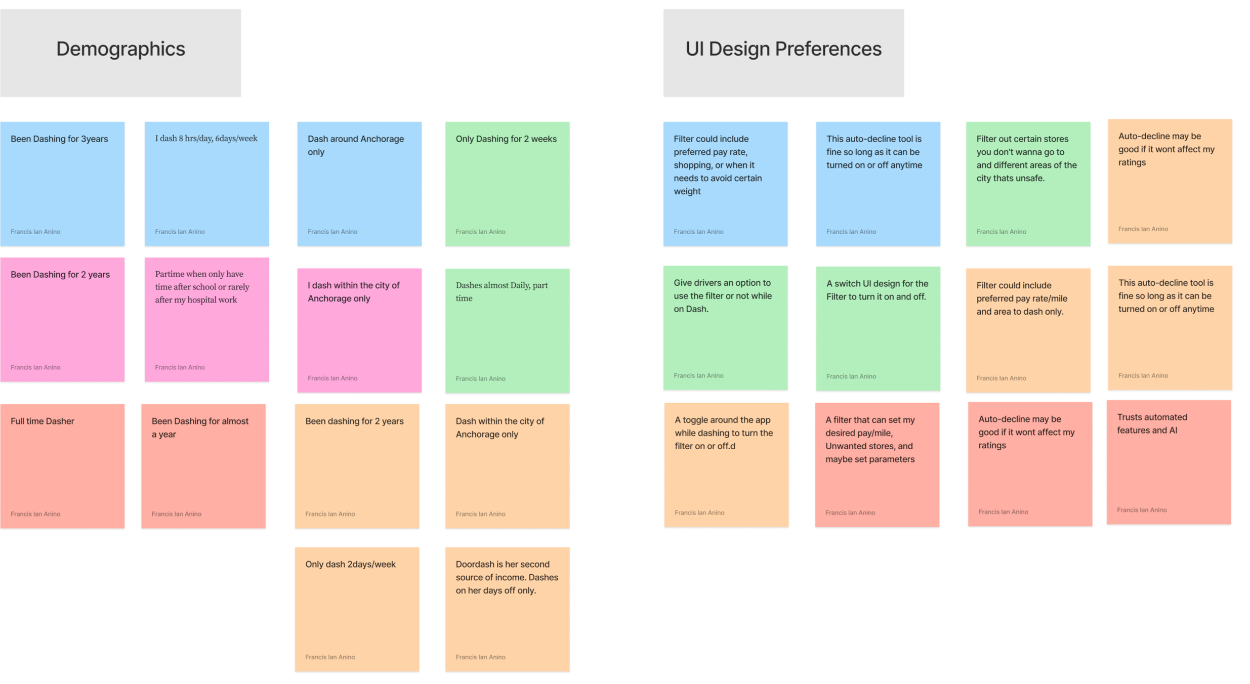 To understand how Dashers handle incoming orders, I interviewed active delivery drivers to learn how they make decisions on the road. I explored their workflows, the tools they rely on, and the challenges they face with constant order requests. These conversations revealed key pain points around safety, decision fatigue, and lack of control — highlighting opportunities to make order management smarter, safer, and more driver-friendly.